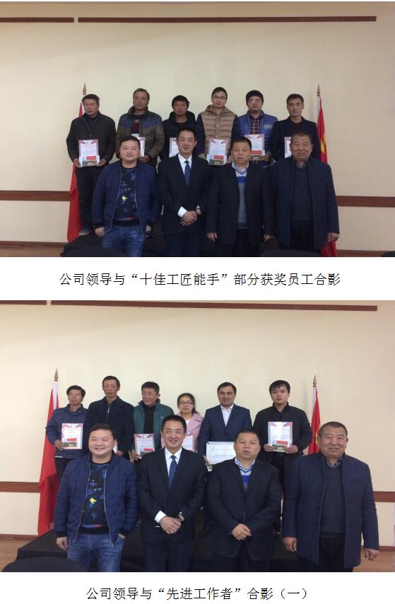 公司按照“年度十佳工匠能手”、“年度先進(jìn)工作者”、“海外工作貢獻獎”的三個(gè)類(lèi)別對員工進(jìn)行表彰,頒發(fā)榮譽(yù)證書(shū)、頒發(fā)海外工作貢獻獎金牌、頒發(fā)獎金、留影合照,精神鼓勵為主,物質(zhì)獎勵為輔。頒獎合影環(huán)節將會(huì )議推向高潮,引起在座員工內心共鳴,不由地為他們鼓掌祝賀,以表達對他們敬業(yè)愛(ài)崗、吃苦耐勞精神的深深敬意!